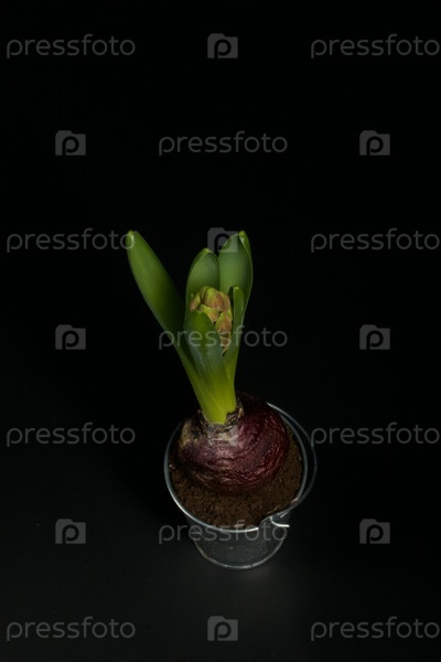 Гиацинт в декоративном ведре. Крупный план