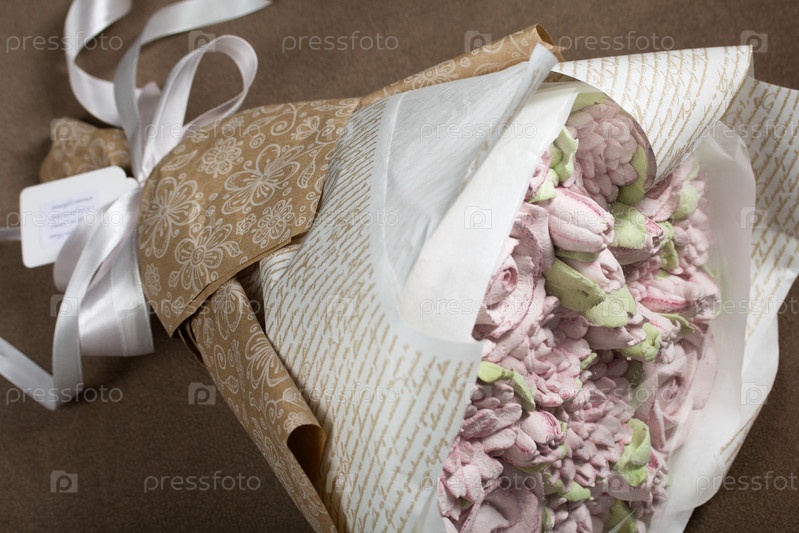 Букет из зефира. Зефирные цветы. Упаковано в крафтовую бумагу