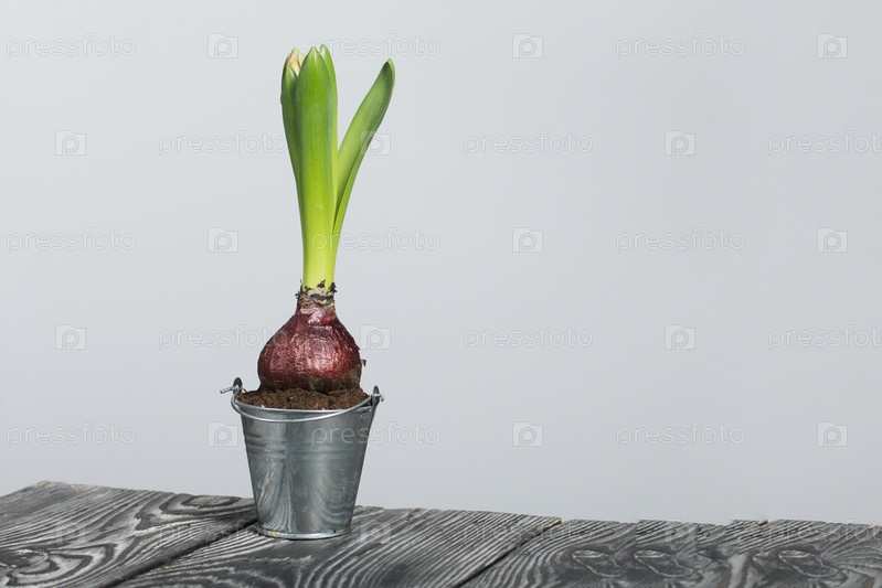 Гиацинт в декоративном ведре. Крупный план