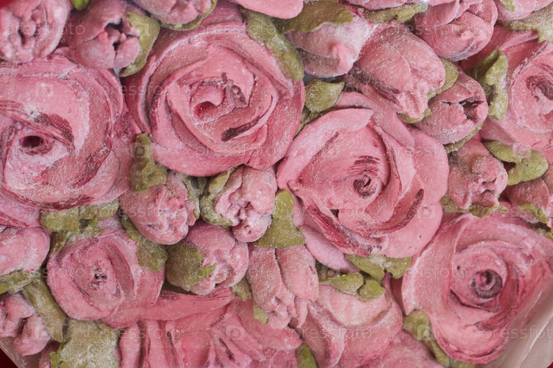 Букет из зефира. Зефирные цветы. Упаковано в крафтовую бумагу. Крупный план