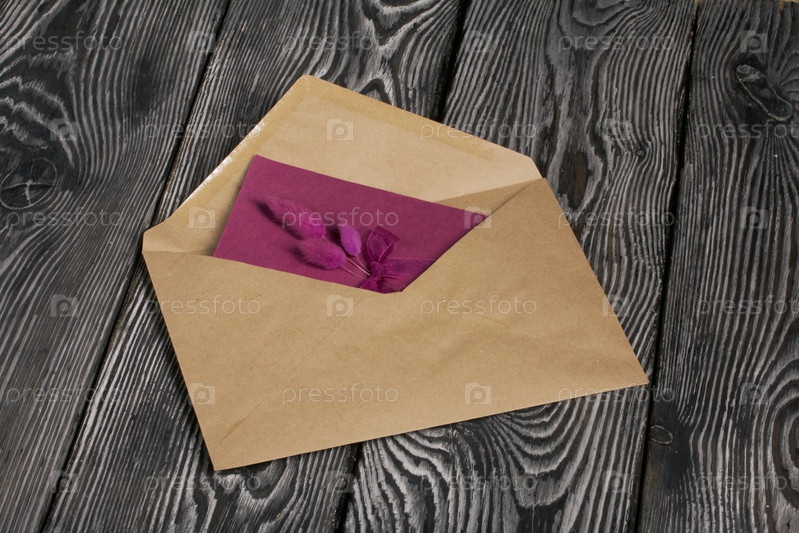 Розовый конверт с фиолетовой лентой, перевязанной вокруг него
