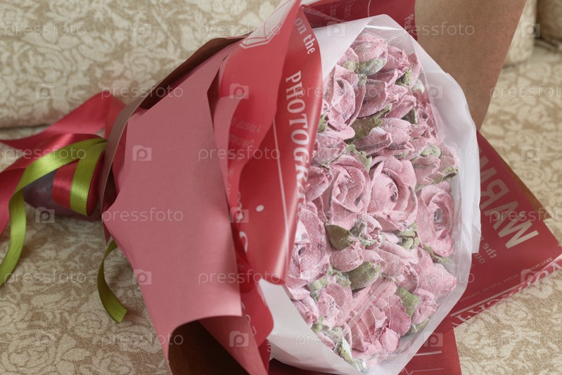 Букет из зефира. Зефирные цветы. Упаковано в крафтовую бумагу