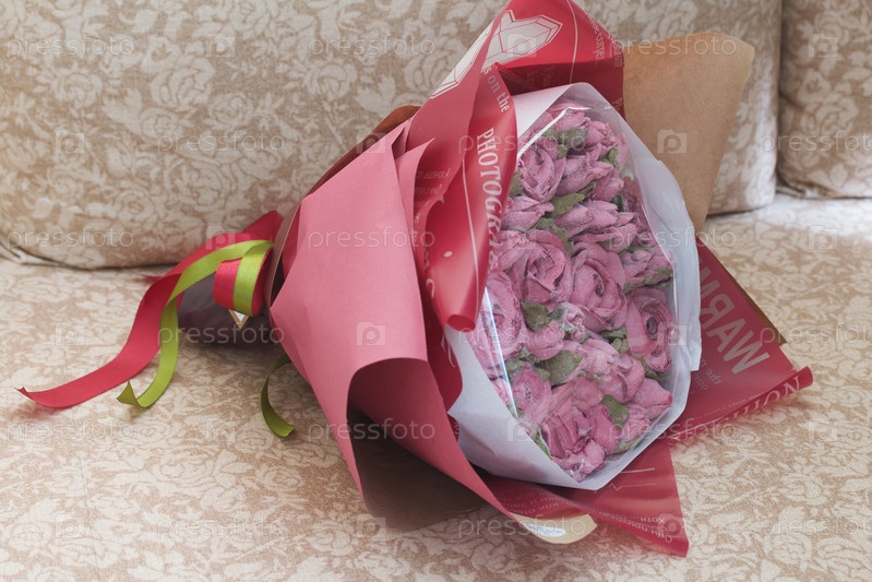 Букет из зефира. Зефирные цветы. Упаковано в крафтовую бумагу