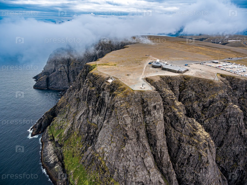 Аэрофотосъемка побережья Баренцева моря, мыса Нордкап (Нордкап) на севере Норвегии