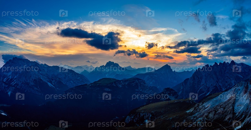 Панорама национального природного парка Тре Чиме в Доломитовых Альпах. Прекрасная природа Италии