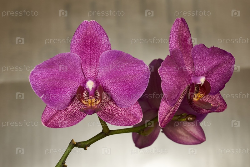 Яркие фиолетовые цветы орхидеи на нейтральном фоне представляют элегантную красоту природы. Крупный план ярких фиолетовых орхидей с нежным пятнистым узором на лепестках