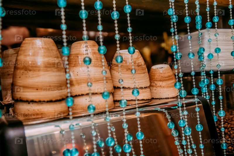 Маленькие кружки для эспрессо, лежащие на кофемашине, вкусный ароматный напиток в кофейне