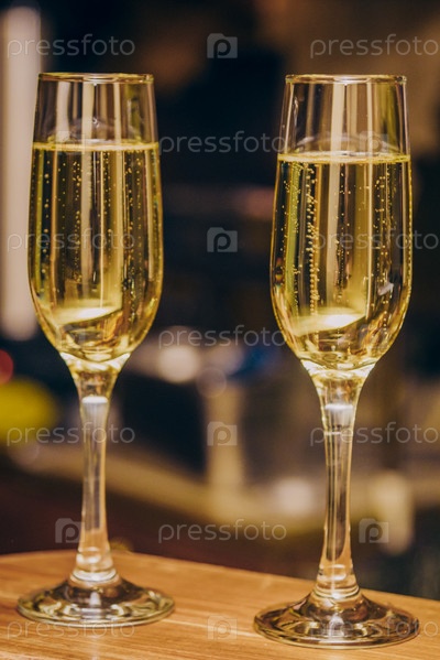 Стеклянные бокалы с шампанским, люди празднуют важное событие, праздничный тост