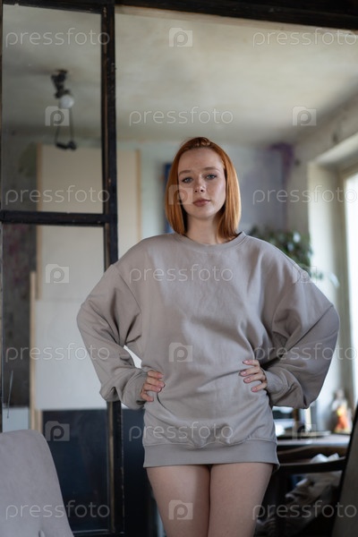 Портрет молодой красивой женщины с рыжими волосами в студии