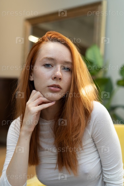 Портрет молодой красивой женщины с рыжими волосами в студии
