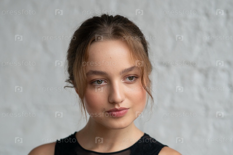 Портрет молодой красивой женщины с собранными волосами в студии