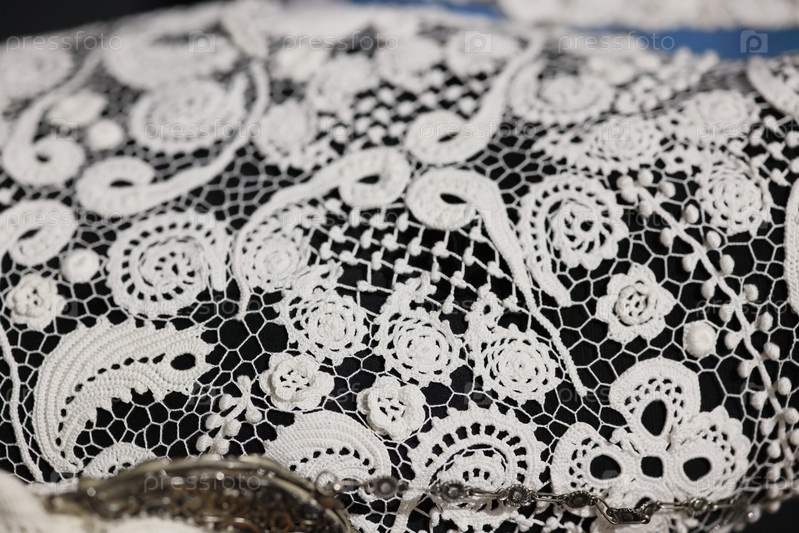 Этот замысловатый узор из белого кружева прекрасно выделяется на ярком черном фоне