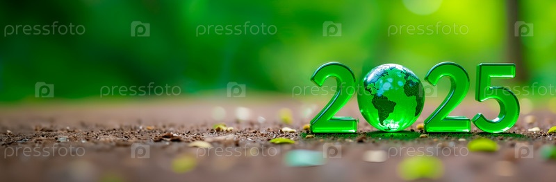 Баннер с цифрами 2025 года с земным шаром в зеленых тонах Концепция экологической осведомленности и устойчивости будущего Экология и сохранение планеты Земля Копи-пространство, для текста