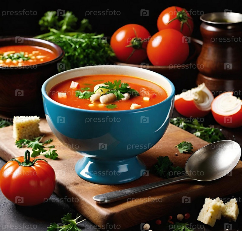 Суп в тарелке на столе ИИ