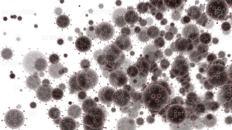 Коронавирусная болезнь COVID-19 темные частицы на белом фоне