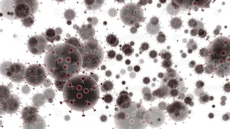 Коронавирусная болезнь COVID-19 темные частицы на белом фоне