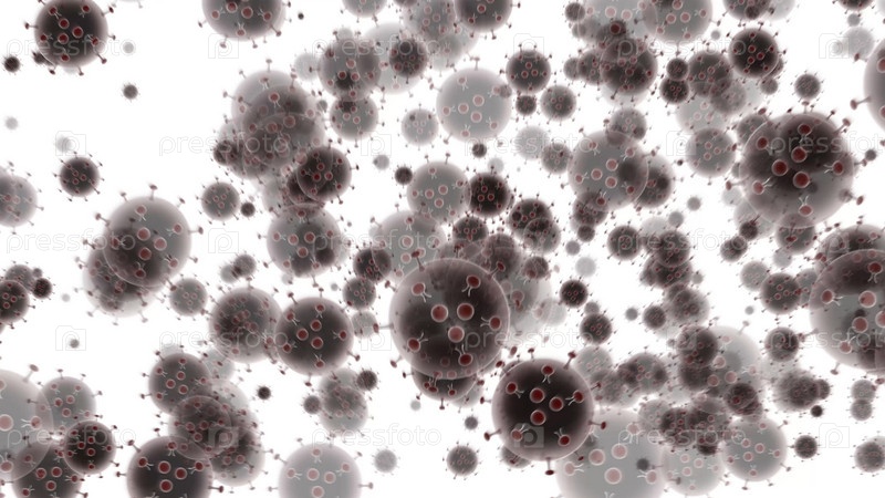 Коронавирусная болезнь COVID-19 темные частицы на белом фоне