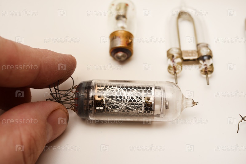 Старые электронные электронные лампы в моей руке. Лампы для измерительных приборов и освещения