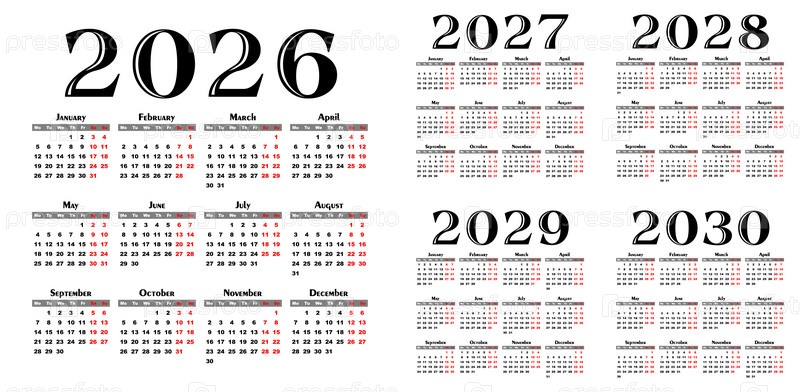 Набор шаблонов календаря на 2026-2030 годы