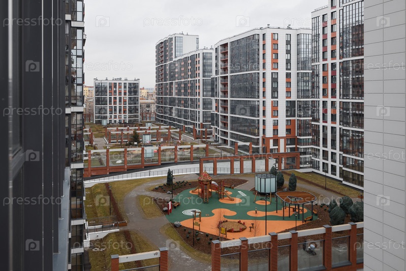Современный жилой комплекс для семей с детской площадкой и удобствами в городской среде