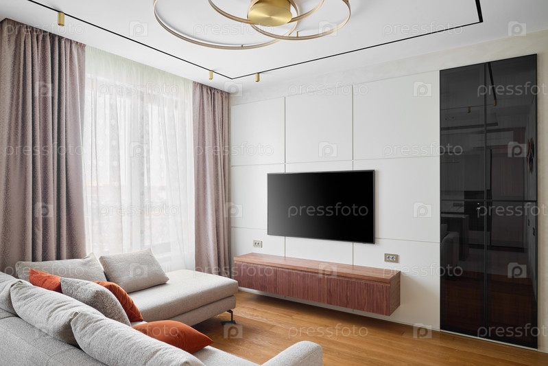 Современный дизайн интерьера гостиной со стильной и удобной мебелью