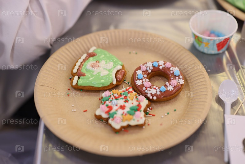 Красиво оформленный набор праздничного печенья, искусно выставленный на декоративной тарелке