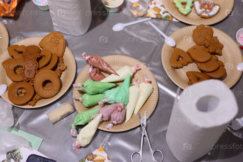 Очаровательная праздничная станция для украшения печенья, наполненная яркой глазурью и забавными фигурками
