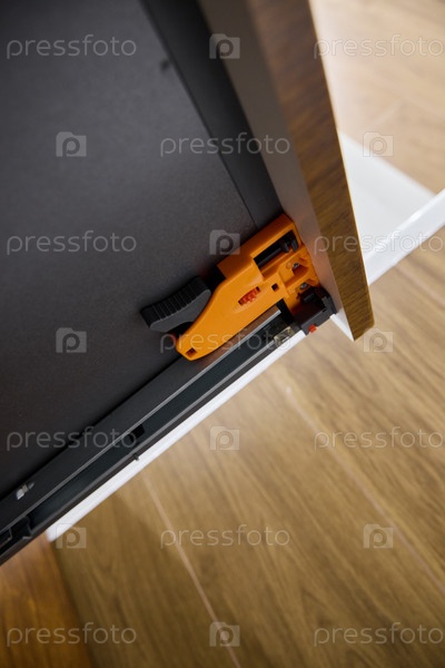 Эта современная направляющая для ящиков имеет уникальный оранжевый компонент, который повышает функциональность и эстетичность
