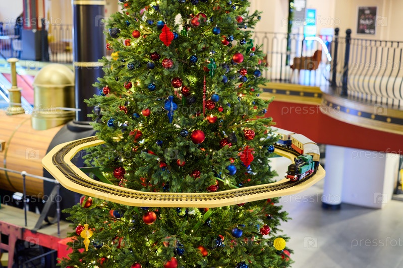Наслаждайтесь праздничным приключением на поезде вокруг красивой украшенной рождественской елки