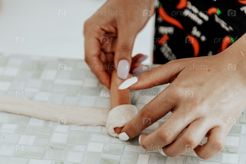 Шеф-повар на кухне ресторана готовит сосиски в тесте, изысканное блюдо из теста и мяса, которое нужно приготовить