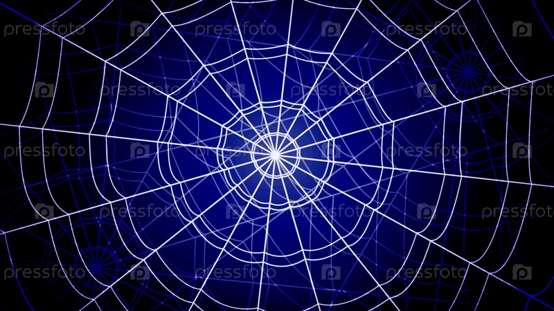 Белые концентрические паутины резко подпрыгивают и прилипают к синему фону