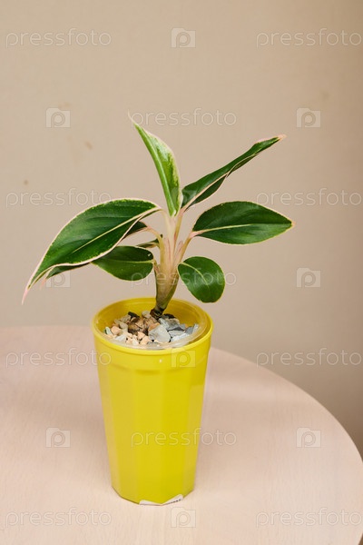 Яркое комнатное растение в ярко-желтом декоративном горшке для дизайна интерьера вашего дома