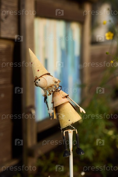 Очаровательная деревянная игрушка, восхитительно демонстрируемая в прекрасном саду на лоне природы