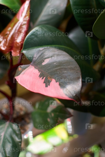Интимный крупный план красочной листвы, демонстрирующий уникальные и замысловатые узоры листьев