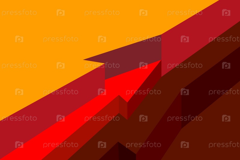 Красная стрелка скрыта в слоях изометрии, наглядное пособие в разрезе