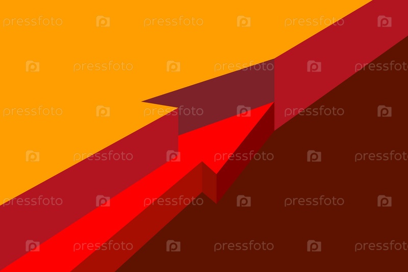 Красная стрелка скрыта в слоях изометрии, наглядное пособие в разрезе