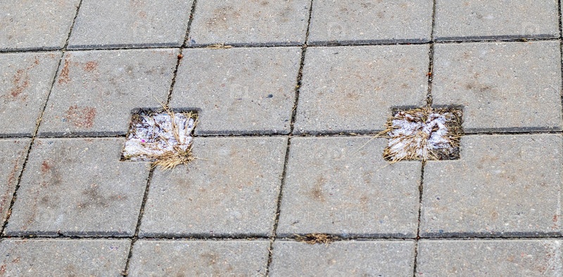 Крупный план замкового кирпича, мороза и почвы между ними. Текстура