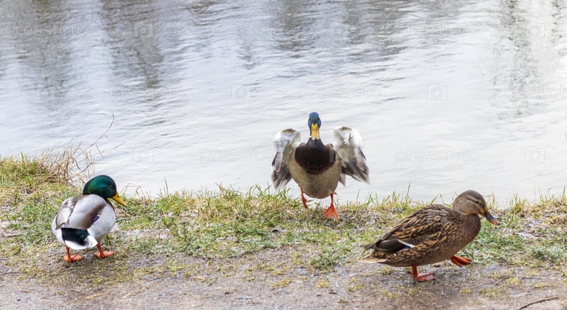 Крупный план уток в пруду. Природа