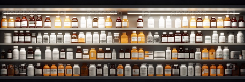 Аптечные полки аптеки интерьер размытый абстрактный фон с копией пространства