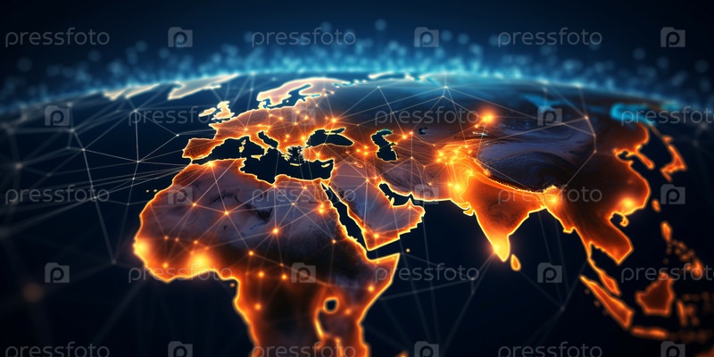 Сфера ночной планеты Земля в открытом космосе. Городские огни на планете. Жизнь людей. Элемент Солнечной системы. Элементы этого изображения предоставлены NASA