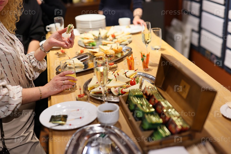 Элегантный и изысканный шведский стол на светском мероприятии, наполненном наслаждениями