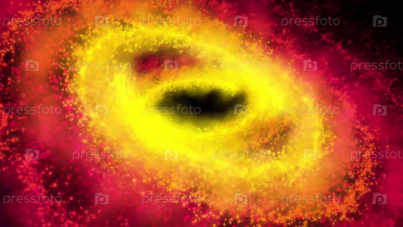 Галактика красная, вращающаяся по часовой стрелке, яркие круглые частицы