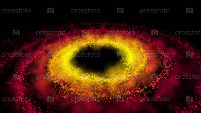 Галактика красная, вращающаяся по часовой стрелке, яркие круглые частицы