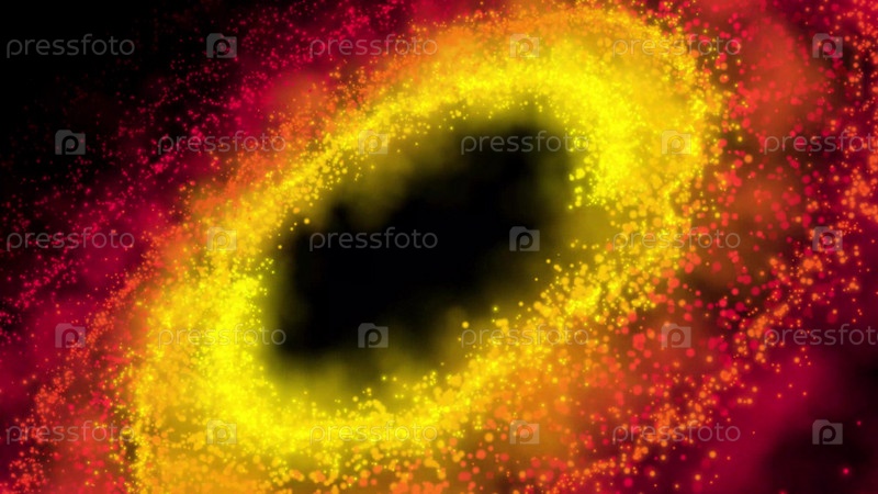 Галактика красная, вращающаяся по часовой стрелке, яркие круглые частицы