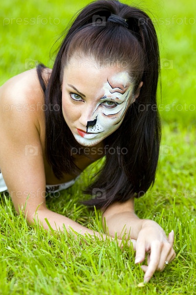 Женщина с разрисованным лицом на траве
