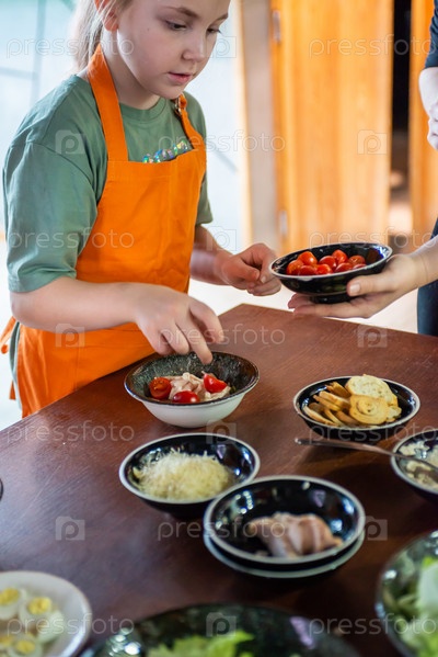 Россия Московская область-29.12.2024. Девушки на кулинарном мастер-классе по приготовлению салата Цезарь в ресторане