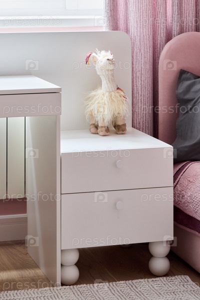Очаровательная и элегантная белая тумбочка, идеально дополненная декоративной игрушкой для детей