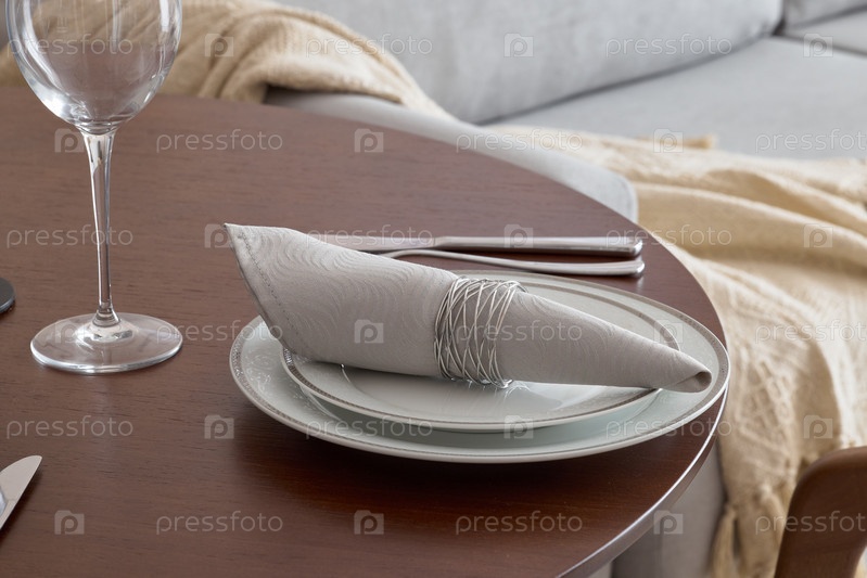 Элегантная сервировка стола с красивыми салфеточными композициями и изысканной стеклянной посудой