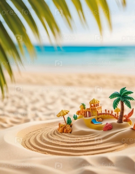 Спокойная пляжная сцена с мягкими волнами, песчаным берегом и пальмами, отбрасывающими тени. Яркие цвета и мягкие мазки создают умиротворяющую атмосферу. Сгенерированный ИИ. Путешествия на солнечном пляже