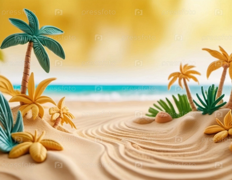 Спокойная пляжная сцена с мягкими волнами, песчаным берегом и пальмами, отбрасывающими тени. Яркие цвета и мягкие мазки создают умиротворяющую атмосферу. Сгенерированный ИИ. Путешествия на солнечном пляже
